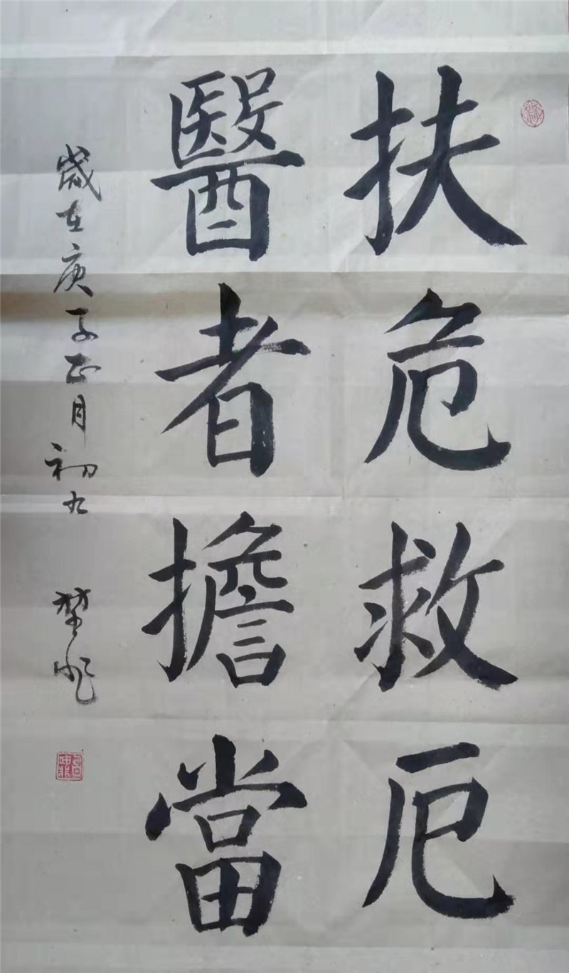 巴彦淖尔市劲荣书画协会的书法家和书画爱好者们,主动在家,拿起手中的笔,创作出一个又一个的作品,为我们一线人员加油,作品数量众多,我们将分期分批展示,今天是我们展出的第二集——祖国强胜、武汉平安: